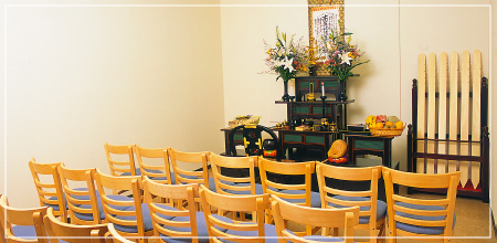 「法事室」はその完成以来、たくさんの方々にご使用いただいております。設備の整った屋内で、厳寒、猛暑、雨の日でも安心して法要を営めるため、大変好評を得ております。